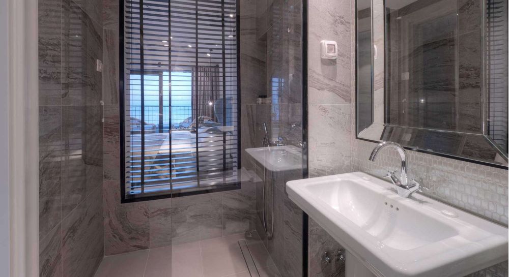 Full marble bathrooms with shower